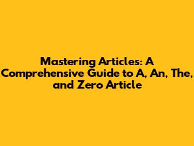 A, An, The: Mastering Articles In English Grammar