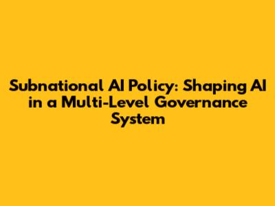 Hey guys! Let's dive into the fascinating world of subnational AI policy and how it's shaping artificial intelligence within a multi-level governance system. This is super important because AI isn't just some techy thing happening in Silicon Valley; it's impacting our communities, our states, and even our cities in profound ways. So, understanding how different levels of government are stepping up to manage and guide AI development is crucial for ensuring a future where AI benefits everyone, not just a select few.