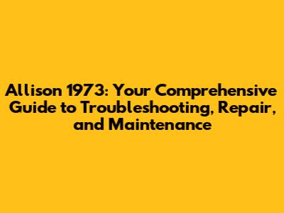 Allison 1973: Troubleshooting, Repair & Maintenance Guide