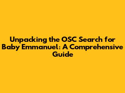 Unpacking the OSC Search for Baby Emmanuel: A Comprehensive Guide