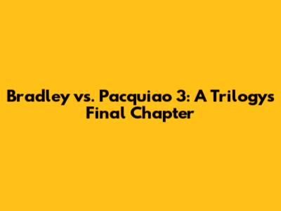 Bradley Vs. Pacquiao 3: A Trilogy's Final Chapter