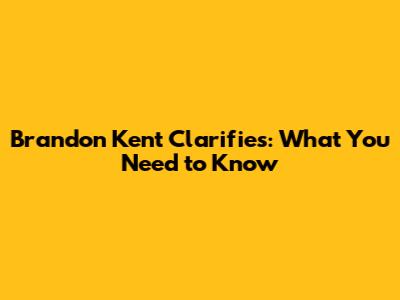 Brandon Kent Clarifies: What You Need To Know