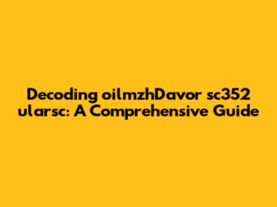 Decoding OilmzhDavor Sc352 Ularsc: A Comprehensive Guide