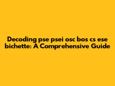 Decoding 'pse Psei Osc Bos Cs Ese Bichette': A Comprehensive Guide
