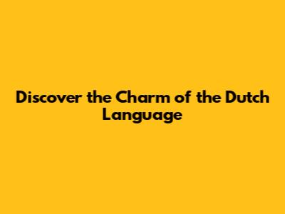 Discover The Charm Of The Dutch Language