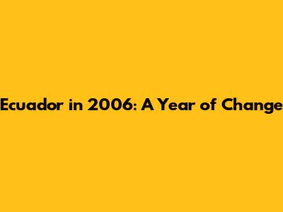 What a wild ride 2006 was for Ecuador, guys! This year was a pivotal moment, marking significant shifts in its political and economic landscape. If you're curious about Latin American history or just love a good story of a nation finding its footing, buckle up. We're diving deep into the events that shaped Ecuador in 2006, and trust me, it's a story worth telling.