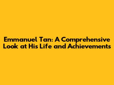 Emmanuel Tan: Biography, Career, And Impact