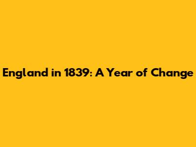 England In 1839: A Year Of Change