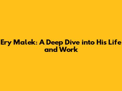 Ery Malek: A Deep Dive Into His Life And Work