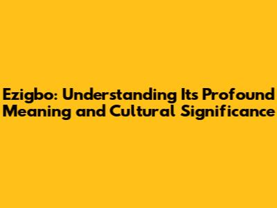 The Cultural Significance of "Ezigbo"