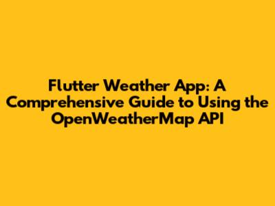 Flutter Weather App: A Guide To Using The OpenWeatherMap API