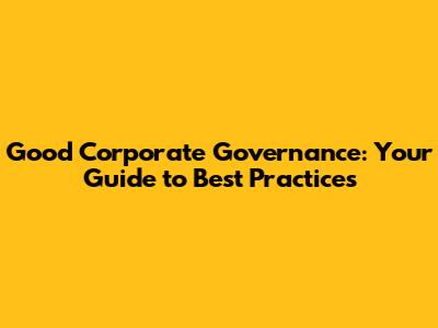Good Corporate Governance: Your Guide To Best Practices