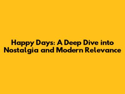 Happy Days: A Deep Dive Into Nostalgia And Modern Relevance