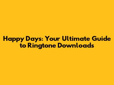 Happy Days: Your Guide To Ringtone Downloads