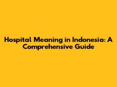 Hospital Meaning In Indonesia: A Comprehensive Guide