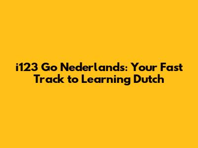 I123 Go Nederlands: Your Fast Track To Learning Dutch