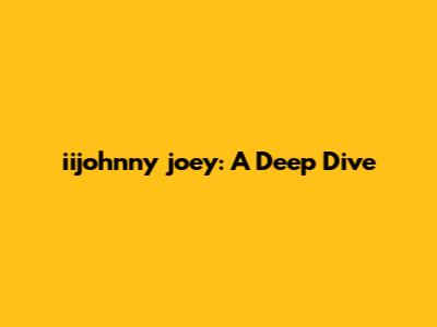 Iijohnny Joey: A Deep Dive