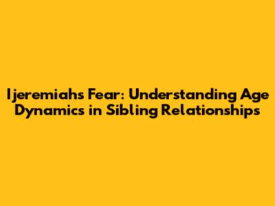Ijeremiah's Fear: Understanding Age Dynamics In Sibling Relationships