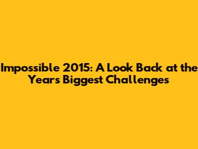 Looking back at 2015, it's clear that the year presented a multitude of challenges that often seemed impossible to overcome. From humanitarian crises and economic uncertainties to environmental threats and political tensions, the world faced a complex web of interconnected problems that required innovative solutions and collective action. However, despite these challenges, 2015 also witnessed remarkable progress in areas such as technology, science, culture, and social justice, demonstrating the resilience and adaptability of human societies. The technological and scientific breakthroughs that occurred in 2015 offered promising solutions to some of the world's most pressing problems, while the cultural and social movements that gained momentum challenged existing norms, promoted social justice, and amplified the voices of marginalized communities. The political and economic shifts that took place in 2015 underscored the importance of strong leadership, sound economic policies, and international cooperation in navigating an increasingly complex and uncertain global landscape. Reflecting on the events of 2015, it's clear that overcoming the "impossible" requires a combination of innovation, collaboration, and perseverance. By embracing new technologies, fostering inclusive societies, and working together to address global challenges, we can create a more sustainable, just, and prosperous future for all. So, yeah, 2015 was a wild ride, but it taught us a lot about our capacity to face adversity and push the boundaries of what's possible. Let's carry those lessons forward, guys!