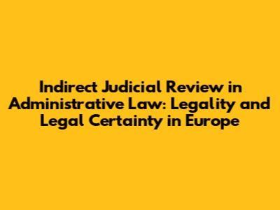 Indirect Judicial Review: Legality & Certainty In Europe