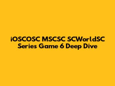 IOSCOSC MSCSC SCWorldSC Series Game 6 Deep Dive