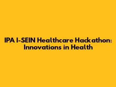 IPA I-SEIN Healthcare Hackathon: Innovations In Health