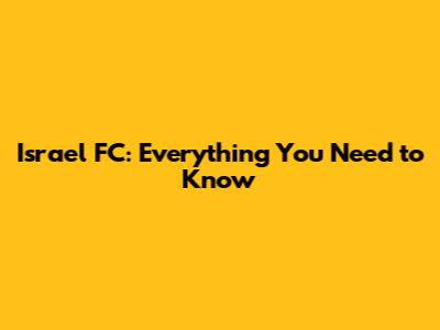 Israel FC: Everything You Need To Know