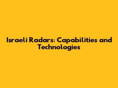 Israeli Radars: Capabilities And Technologies