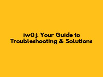 Iw0j: Your Guide To Troubleshooting & Solutions