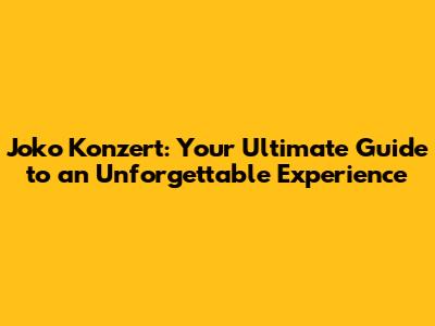 Joko Konzert: Your Ultimate Guide To An Unforgettable Experience