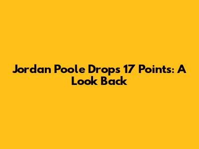 Jordan Poole Drops 17 Points: A Look Back