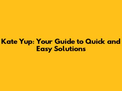 Kate Yup: Your Guide To Quick And Easy Solutions
