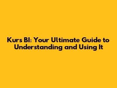 Kurs BI: Your Ultimate Guide To Understanding And Using It