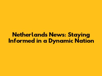Latest Netherlands News Updates & Analysis