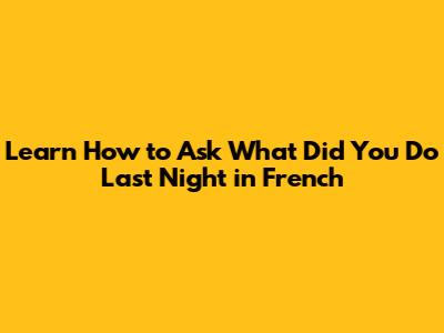 Learn How To Ask 'What Did You Do Last Night' In French