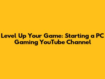 Level Up Your Game: Starting A PC Gaming YouTube Channel