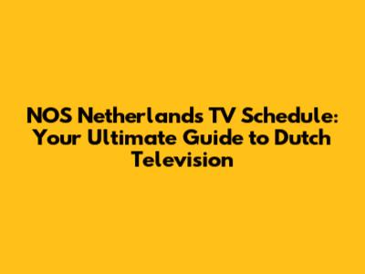 NOS Netherlands TV Schedule: Your Ultimate Guide