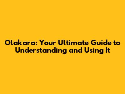 Olakara: Your Guide To Understanding And Using It