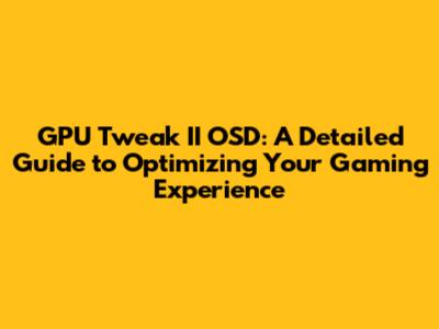 Optimize Gaming With GPU Tweak II OSD: A Detailed Guide