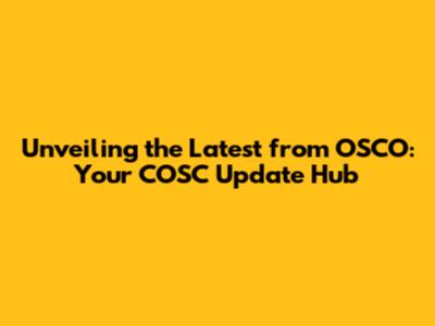 Unveiling the Latest from OSCO: Your COSC Update Hub