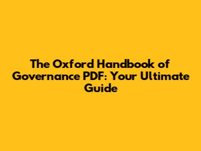 Oxford Handbook Of Governance PDF: A Comprehensive Guide