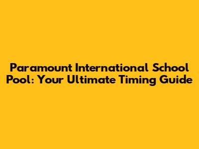 Paramount International School Pool: Your Ultimate Timing Guide