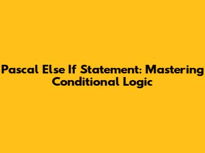 Hey guys! Let's dive into the world of Pascal programming and explore the else if statement. This powerful tool allows you to create more complex and nuanced conditional logic in your programs. If you're just starting out or looking to level up your Pascal skills, you've come to the right place. We'll break down the else if statement, explain its syntax, and provide plenty of examples to help you master it. Trust me, understanding else if will make your code cleaner, more efficient, and easier to read. So, buckle up and let's get started!