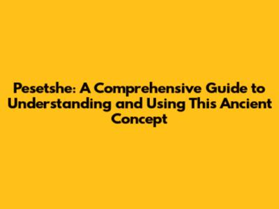 Pesetshe: A Guide To Understanding And Using