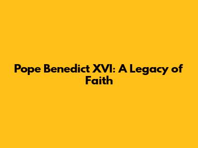 Pope Benedict XVI: A Legacy Of Faith