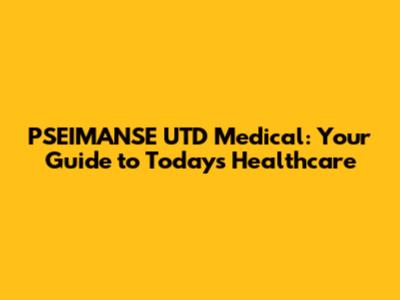 PSEIMANSE UTD Medical: Your Guide To Today's Healthcare
