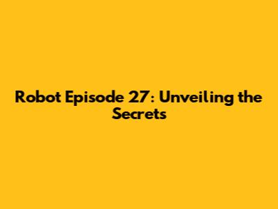 Robot Episode 27: Unveiling The Secrets