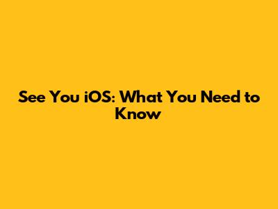 See You IOS: What You Need To Know