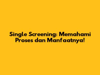 Single Screening: Pahami Proses & Manfaatnya!