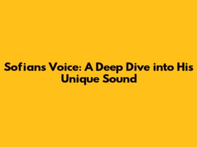 Sofian's Voice: A Deep Dive Into His Unique Sound